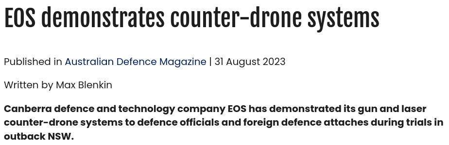 Украина получит 160 антидроновых комплексов Slinger австралийской компании Electro Optic Systems. Средства защиты для Украины закупили США.
