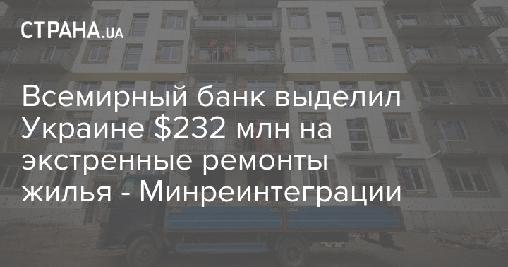 Всемирный банк выделил Украине $232 млн на экстренные ремонты жилья - Минреинтеграции
