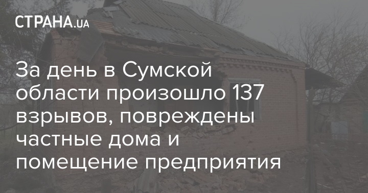 За день в Сумской области произошло 137 взрывов, повреждены частные дома и помещение предприятия