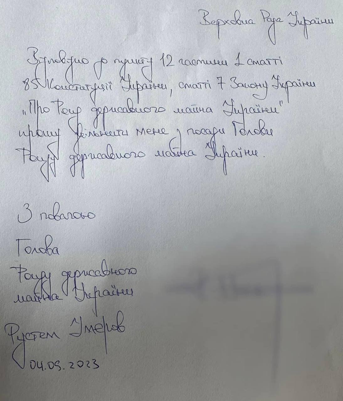 Сегодня, 4 сентября, глава Фонда госимущества Рустем Умеров подал в Верховную Раду заявление об отставке.