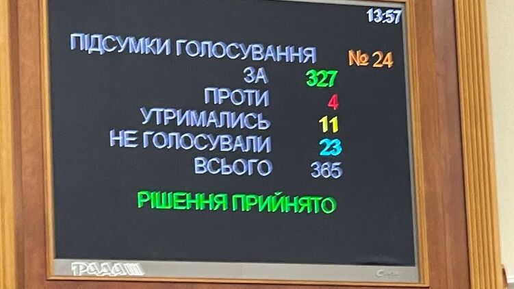 "За" проголосовали 327 депутатов, сообщает народный депутат Ярослав Железняк.