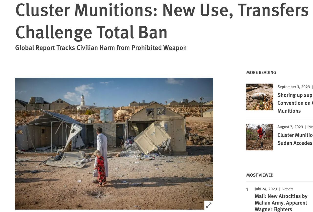 Дальше в отчете упоминается недавняя передача кассетных боеприпасов Украине со стороны США.