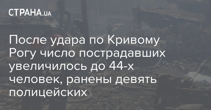 После удара по Кривому Рогу число пострадавших увеличилось до 44-х человек, ранены девять полицейских