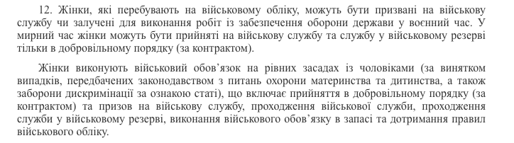 Во-первых, это приказ Министерства обороны Украины № 35 с изменениями. Во-вторых, это статья 1, п. 11 Закона Украины "О воинской обязанности и военной службе" о взятии женщин на военный учет военнообязанных.