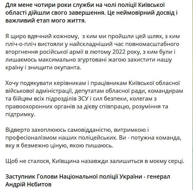 Отметим, что Небытов занимал пост главы полиции Киевской области четыре года.