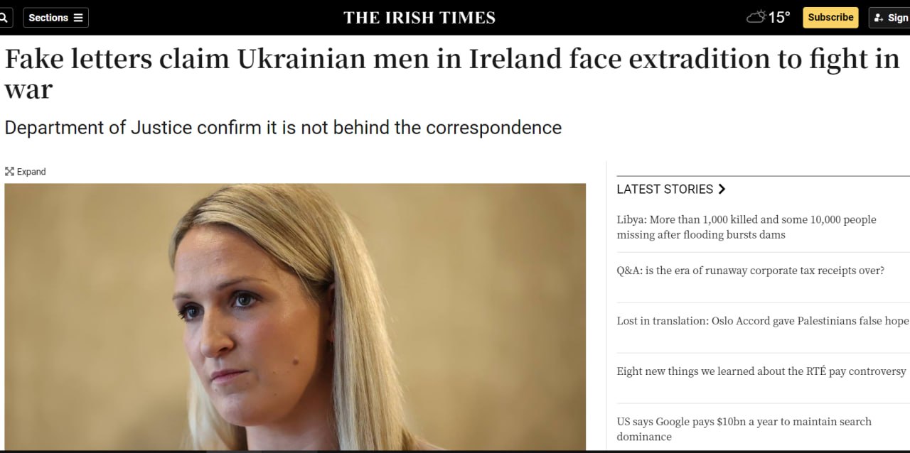 Украинцам в Ирландии направили фейковые письма якобы от Министерства юстиции Ирландии, в которых сообщалось о получении запроса на их экстрадицию для службы в Вооруженных Силах.