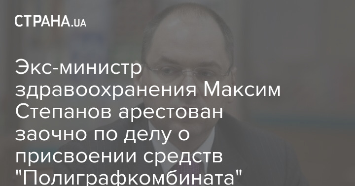 Экс-министр здравоохранения Максим Степанов арестован заочно по делу о присвоении средств "Полиграфкомбината"