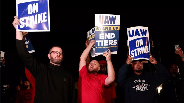 В США сотрудники автомобильных компаний General Motors, Ford и Stellantis начали первую в истории совместную забастовку