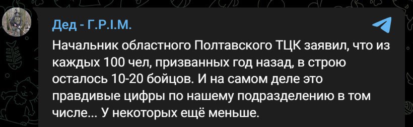 "В откровениях полтавского военкома о больших потерях среди мобилизованных, обращает на себя внимание ещё одна цифра - провал выполнения плана Генштаба по мобилизации.