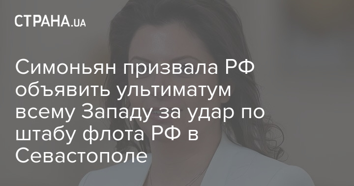 Главред RT Маргарита Симоньян после удара по штабу Черноморского флота РФ в Севастополе призвала российское руководство объявить ультиматум странам "коллективного Запада".