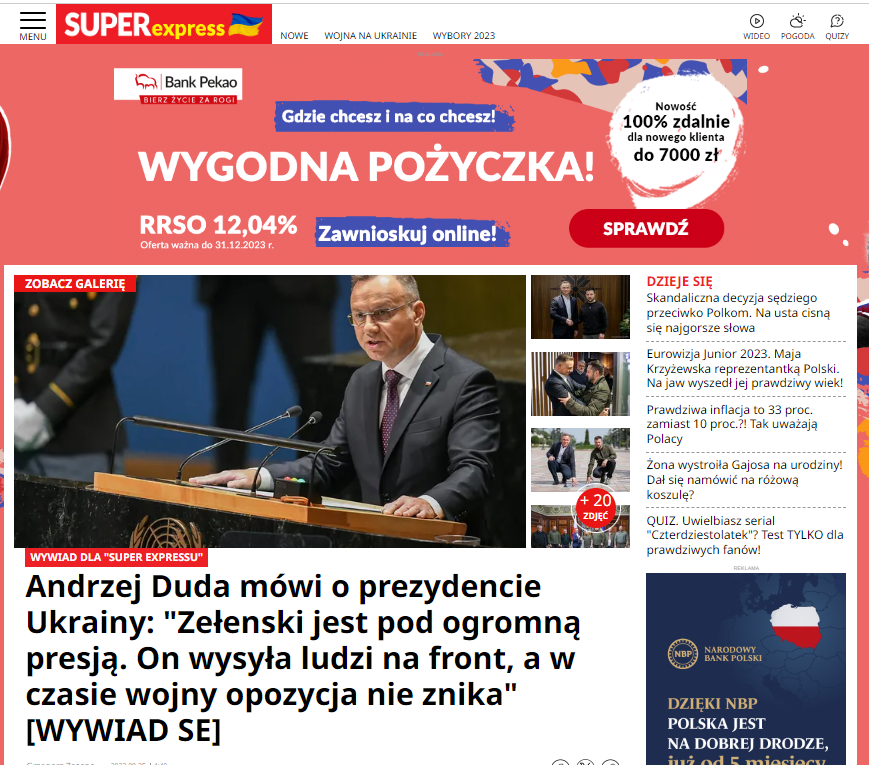 Об этом сказал президент Польши Анджей Дуда в интервью польской газете Super Express.