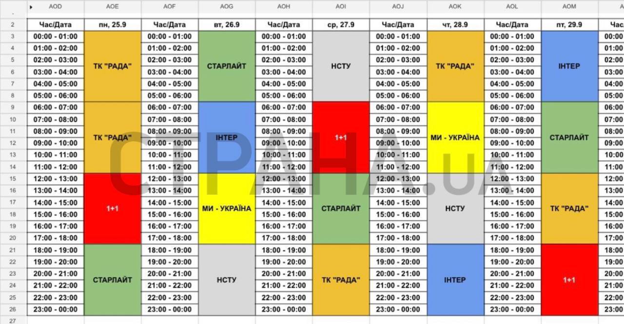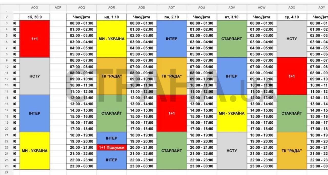 В распоряжении "Страны" оказались квоты каналов в рамках телемарафона на конец сентября-начало октября. Согласно таблицам, пока сокращения эфира у "1+1" нет.