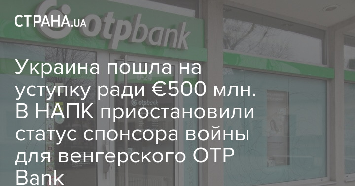 НАПК объявило о приостановлении статуса международного спонсора войны для венгерского OTP Bank, чего неоднократно требовал Будапешт.
