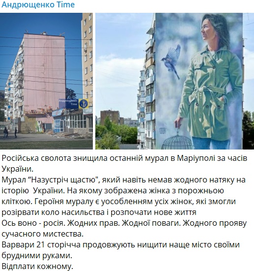В Мариуполе пропал последний мурал. Фото: Telegram
