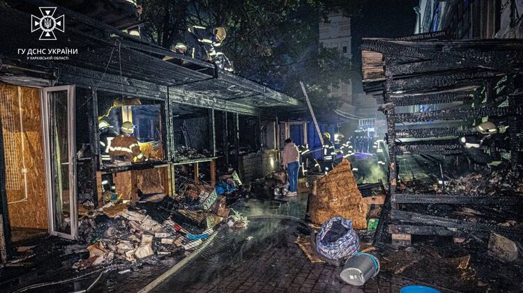 Ночью в Харькове сгорели торговые павильоны на вокзале. Фото