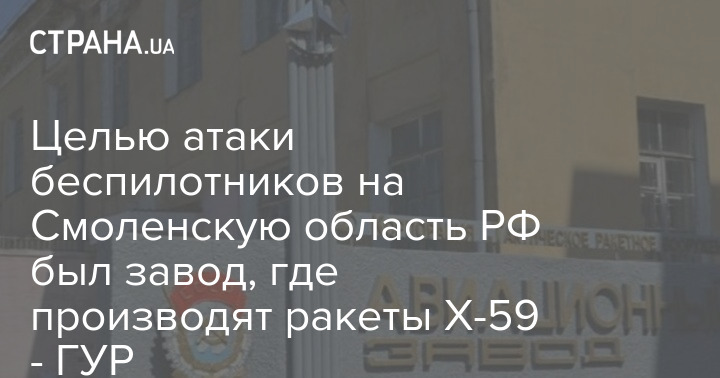 Целью атаки беспилотников на Смоленскую область РФ был завод, где производят ракеты Х-59 - ГУР