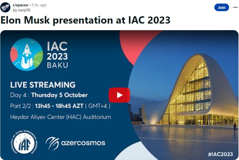 Об этом сообщил Илон Маск на сессии 74-го Международного астронавтического конгресса в Баку, на котором выступал дистанционно.