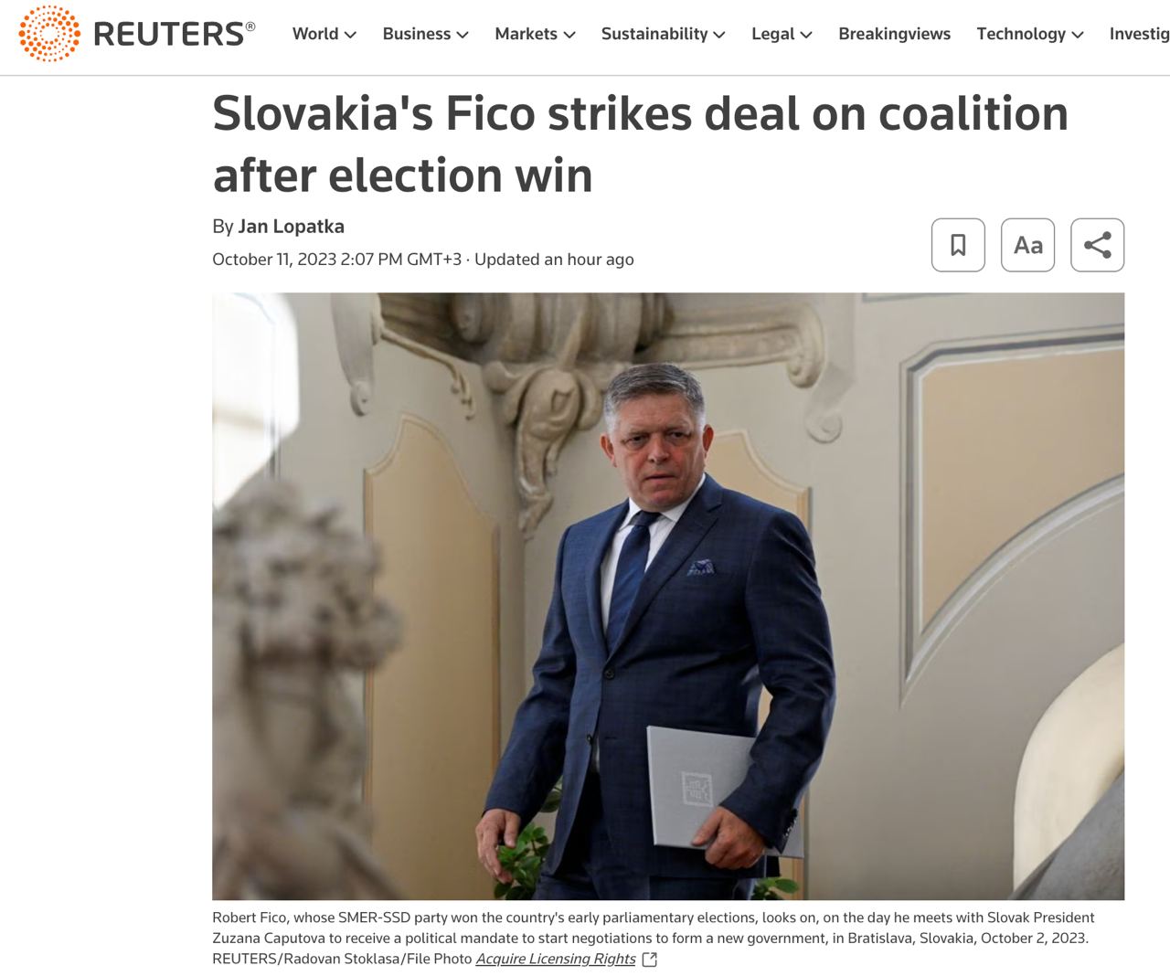 Сегодня утром мы сообщали, что победившая на выборах в Словакии партия Роберта Фицо практически собрала коалицию.