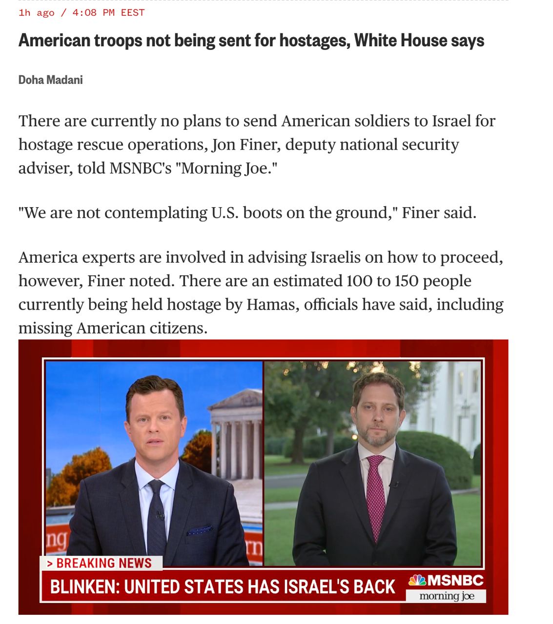 По оценкам чиновников, в заложниках ХАМАС находятся 100-150 человек, включая пропавших без вести американских граждан.