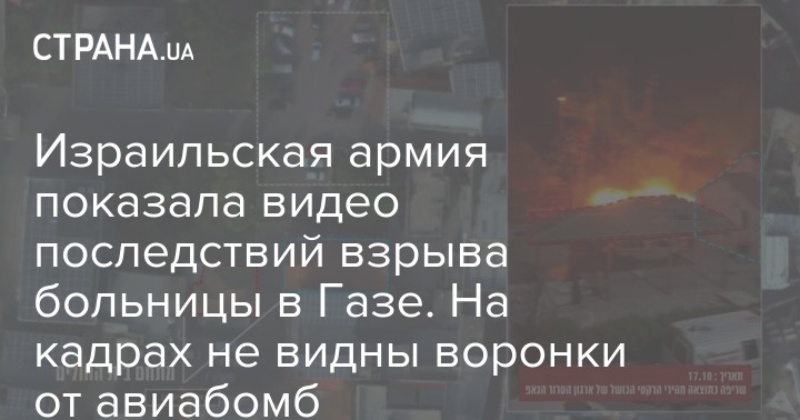 Израильская армия опубликовала видео последствий взрыва на территории больницы в Газе, где вчера погибли 800 человек.