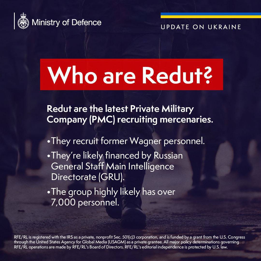 Британская разведка сообщает, что ЧВК "Редут" набирает наемников под видом "добровольцев", в том числе бывших "вагнеровцев".
