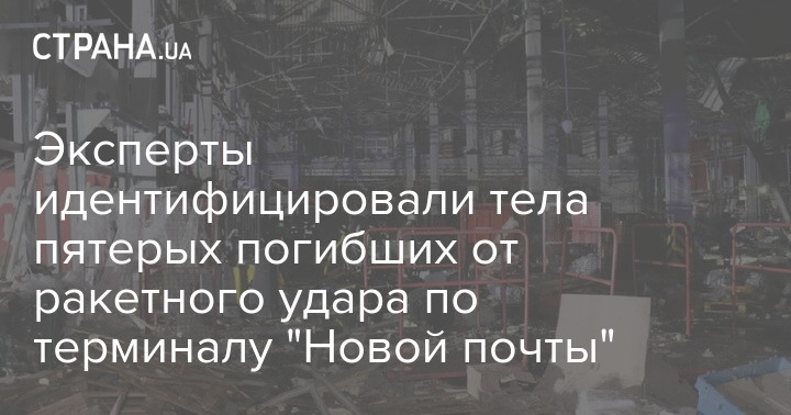 Эксперты идентифицировали по внешним признакам тела пятерых погибших в результате ракетного удара по терминалу "Новой почты" под Харьковом.