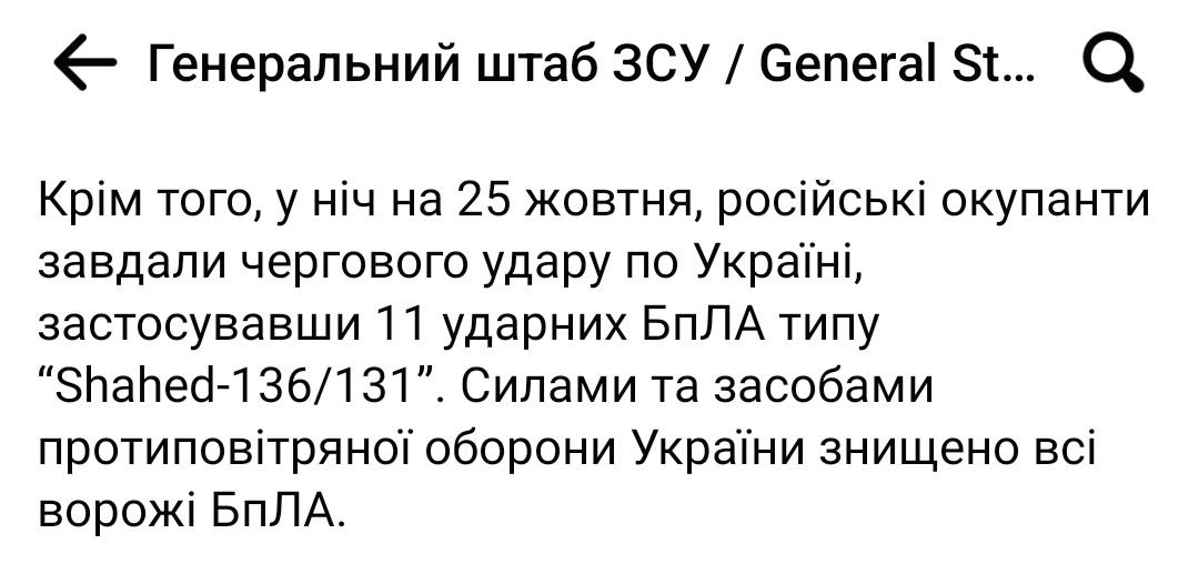 За ночь 25 октября над Украиной сбили 11 "Шахедов".
