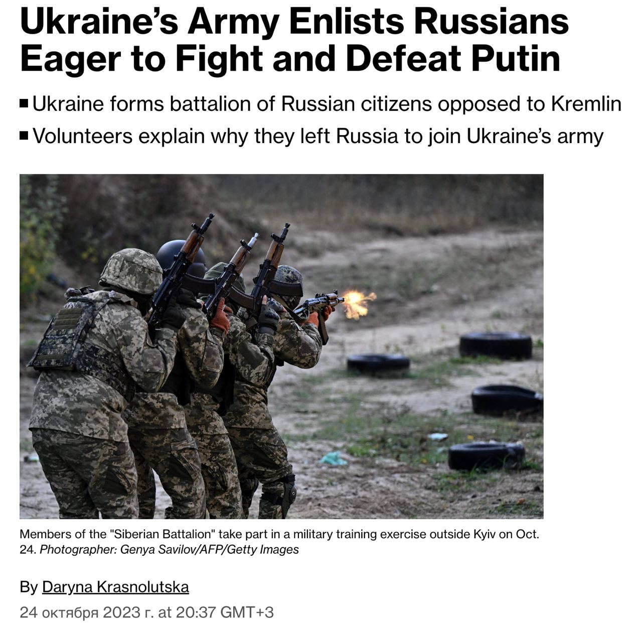 В Украине появился батальон "Сибирь" из граждан РФ, желающих бороться против вторжения - Bloomberg