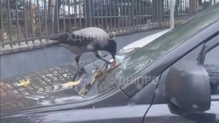 Обычная ворона разорвала в клочья квитанцию штрафа, который выписали водителю в Днепре. Видео
