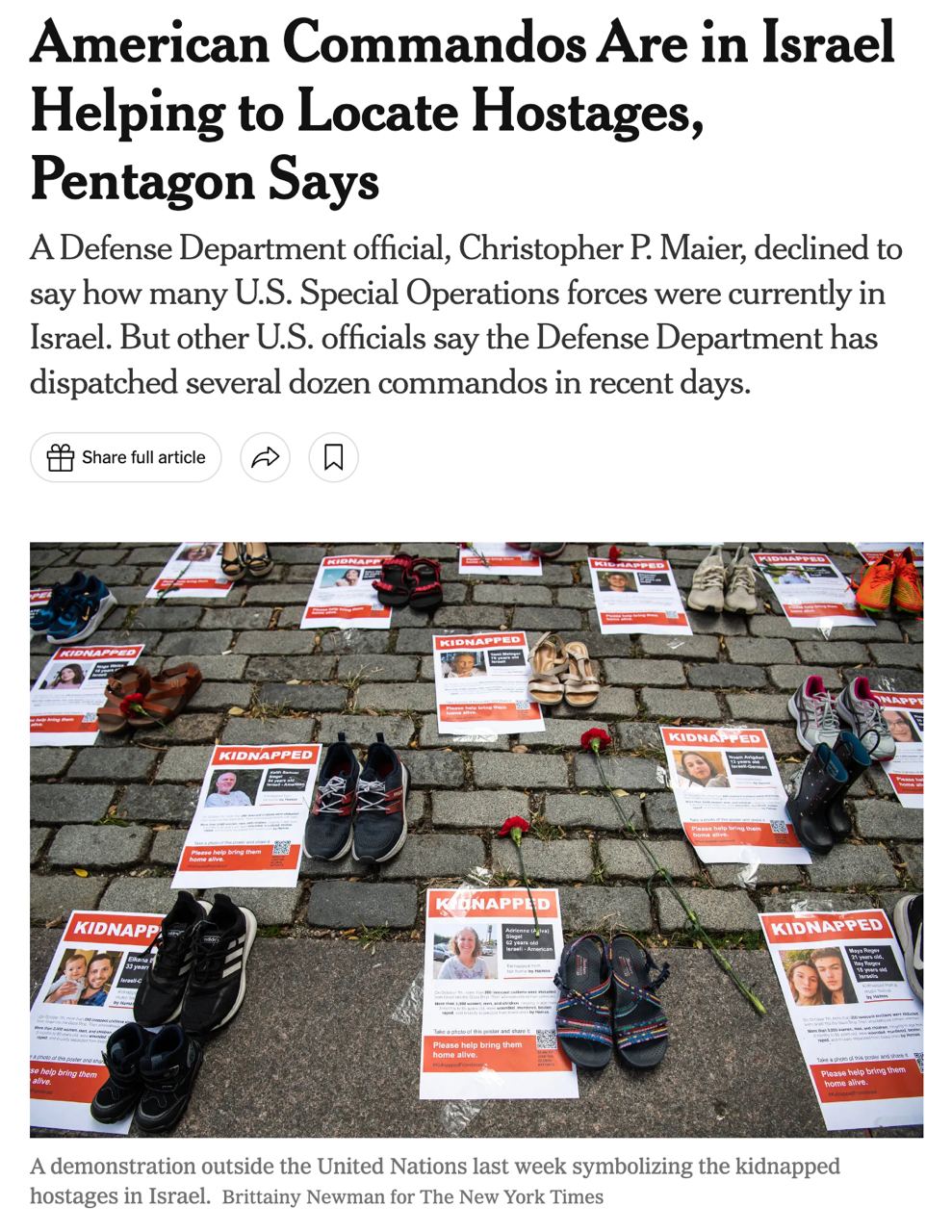 11:56 Американский спецназ прибыл в Израиль для помощи в поиске заложников, сообщил представитель Пентагона Кристофер Майер.