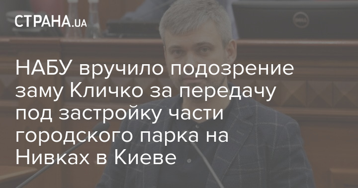 Национальное антикоррупционное бюро Украины (НАБУ) вручило подозрение заместителю мэра Киева Виталия Кличко Петру Оленичу. Сообщается о злоупотреблениях положением, что привело к незаконной передаче части парка "Нивки" под застройку.