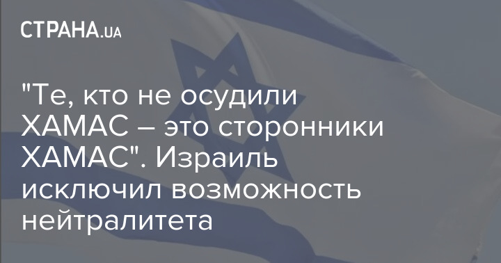 "Те, кто не осудили ХАМАС – это сторонники ХАМАС". Израиль исключил возможность нейтралитета
