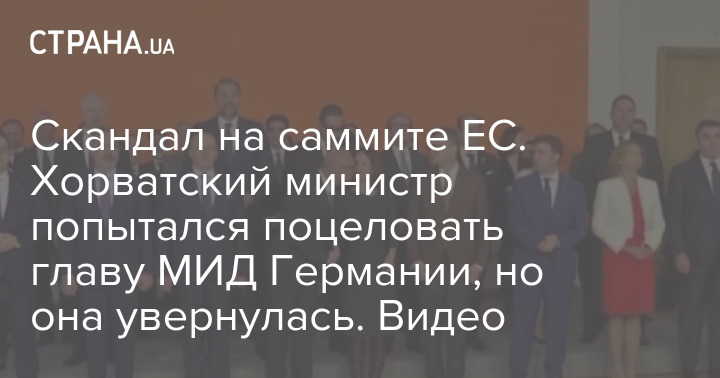 Скандал на саммите ЕС. Хорватский министр попытался поцеловать главу МИД Германии, но она увернулась. Видео