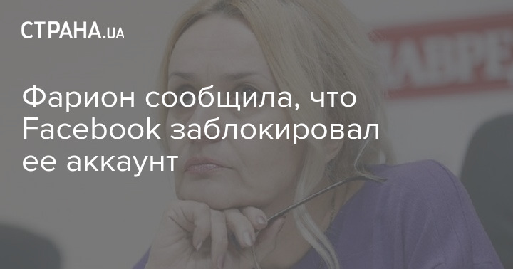 Бывшая народный депутат от партии "Свобода" Ирина Фарион сообщила, что Facebook заблокировал ее аккаунт.