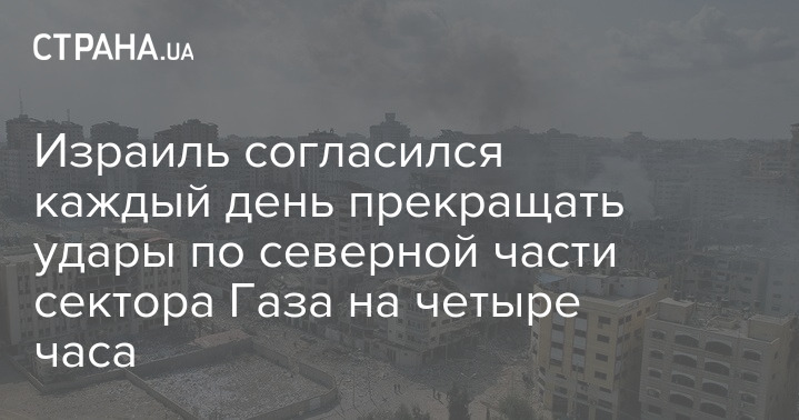 Израиль согласился каждый день прекращать удары по северной части сектора Газа на четыре часа.