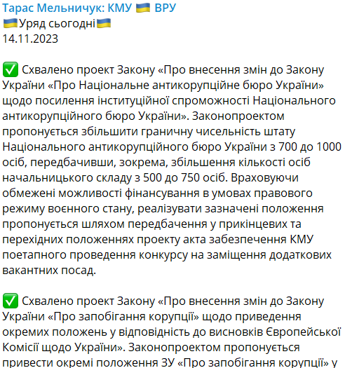 Кабинет министров согласовал и подал в Верховную Раду законопроекты о расширении штата Национального антикоррупционного бюро Украины (НАБУ) и полномочий Национального агентства по предотвращению коррупции (НАПК).