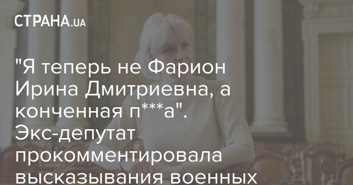 "Я теперь не Фарион Ирина Дмитриевна, а конченная п***а". Экс-депутат прокомментировала высказывания военных