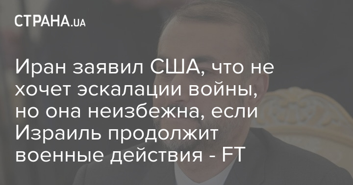 Иран заявил США, что не хочет эскалации войны, но она неизбежна, если Израиль продолжит военные действия - FT