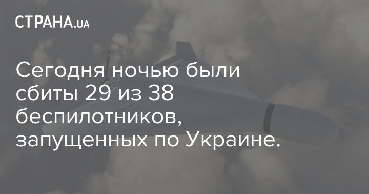 Сегодня ночью были сбиты 29 из 38 беспилотников, запущенных по Украине.