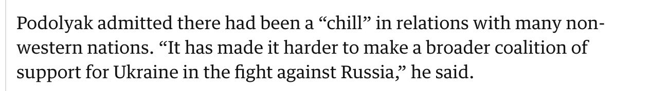 11:15 В отношениях со многими незападными странами у Киева наступило "охлаждение" (chill) после начала войны Израиля с ХАМАС.