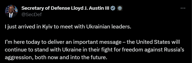 В Украину прибыл глава Пентагона Ллойд Остин. Фото: Х