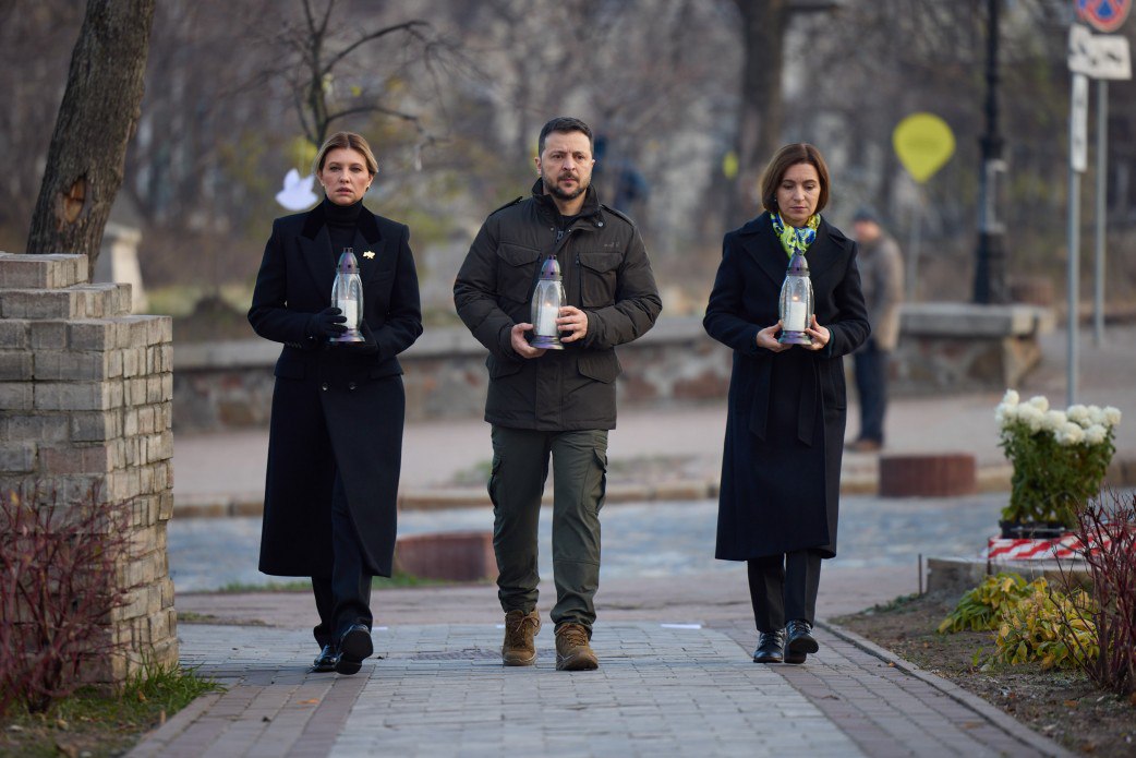 Владимир и Елена Зеленские вместе с Майей Санду установили лампадки у креста на Аллее Героев Небесной Сотни в Киеве. Также почтили память павших у их портретов. В честь погибших участников Революции достоинства прозвучали удары колокола.