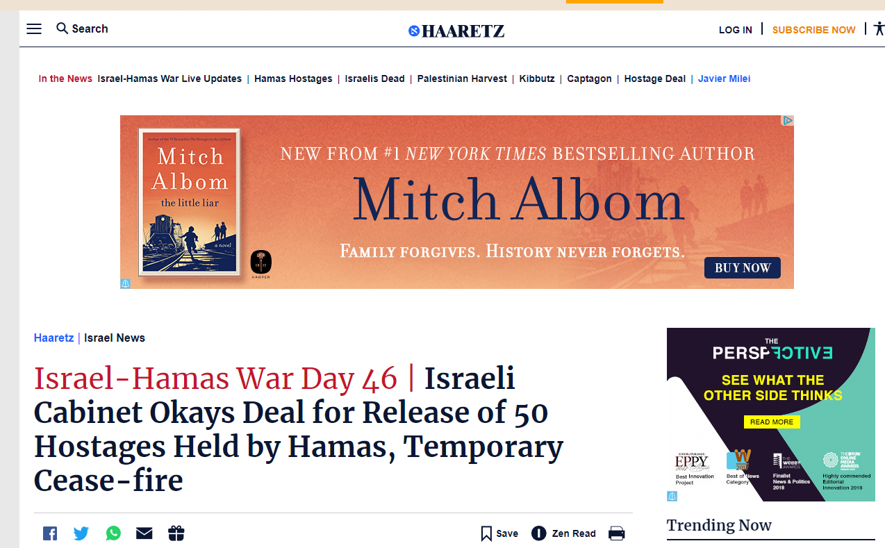 При этом ХАМАС утверждает, что в обмен на 50 израильских заложников власти Израиля обязались выпустить из тюрем 150 палестинских женщин и детей в возрасте до 19 лет.