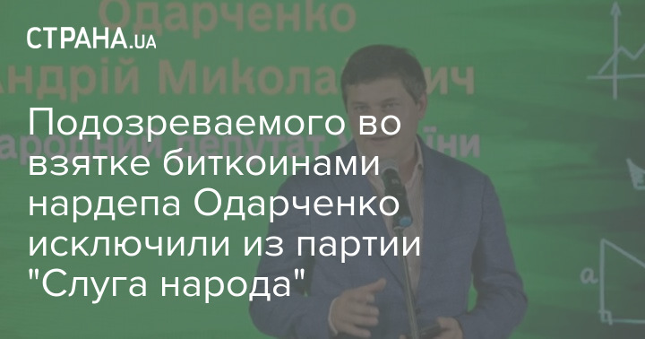 Из партии "Слуга народа" исключили народного депутата Андрея Одарченко, который предлагал взятку биткоинами главе Госагентства восстановления Мустафе Найему.