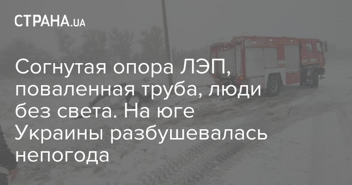 Так, компания "Укрэнерго" опубликовала снимок того, что в Одесской области натворила вьюга: напора ветра не выдержала одна из металлических опор линии электропередачи и согнулась, как сухая ветка. Также были повреждены распределительные сети облэнерго, начались перепады напряжения в электросети.