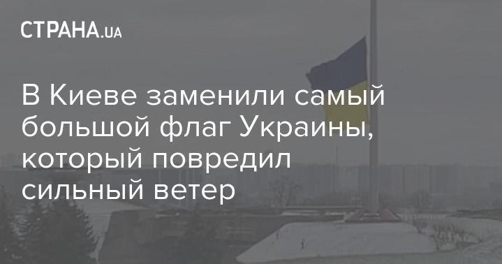 В Киеве заменили самый большой флаг Украины, который повредил сильный ветер