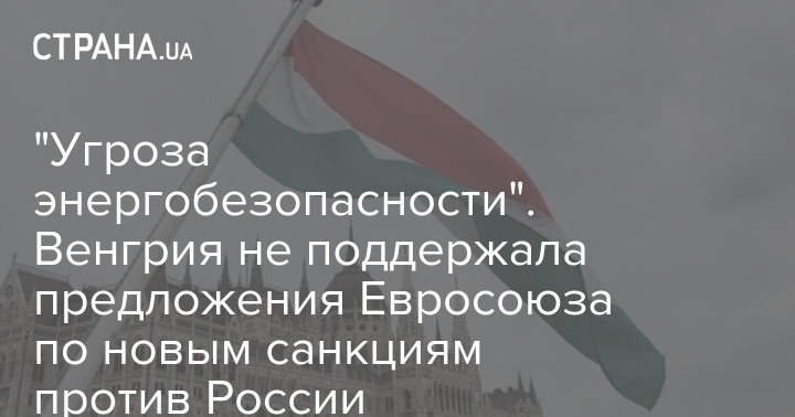 "Угроза энергобезопасности". Венгрия не поддержала предложения Евросоюза по новым санкциям против России