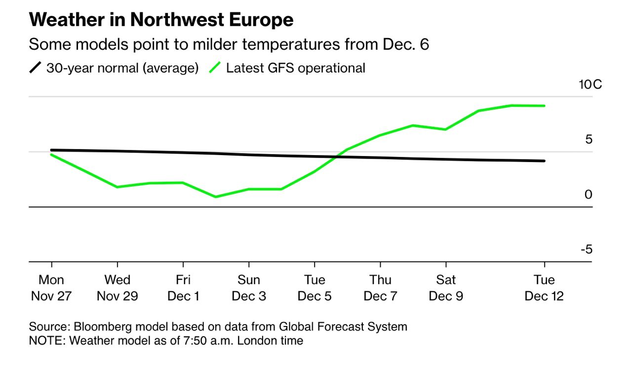Холод пришел в Европу после задержки начала отопительного сезона, что позволило многим странам накопить рекордные запасы природного газа.