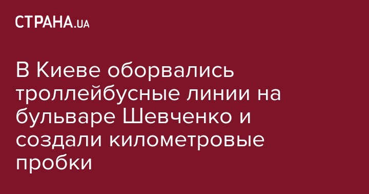 В Киеве оборвались троллейбусные линии на бульваре Шевченко и создали километровые пробки