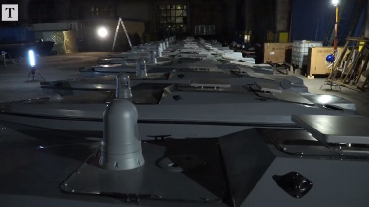 На видео показана большая партия морских дронов Magura V5, а также можно заметить новые неизвестные беспилотники.